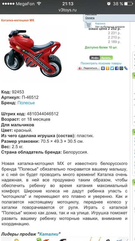 У нас девочка) в 1,9 или в 1,10 были на выставке,где они были представлены,села и поехала) пришли домой-тут же купили!летом взяли страйдер раз интерес то есть-она отказывается на нем ездить) только мотоцикл этот!