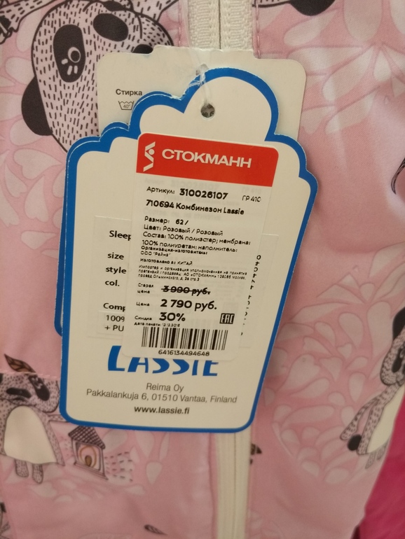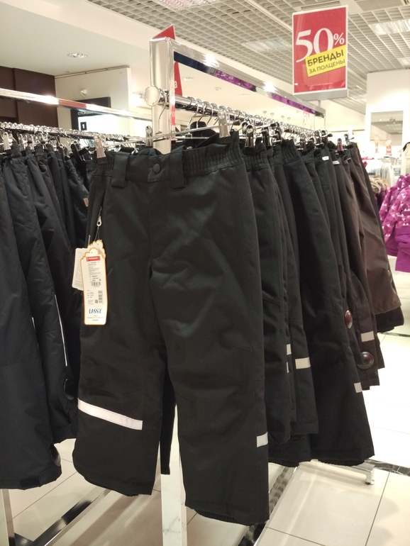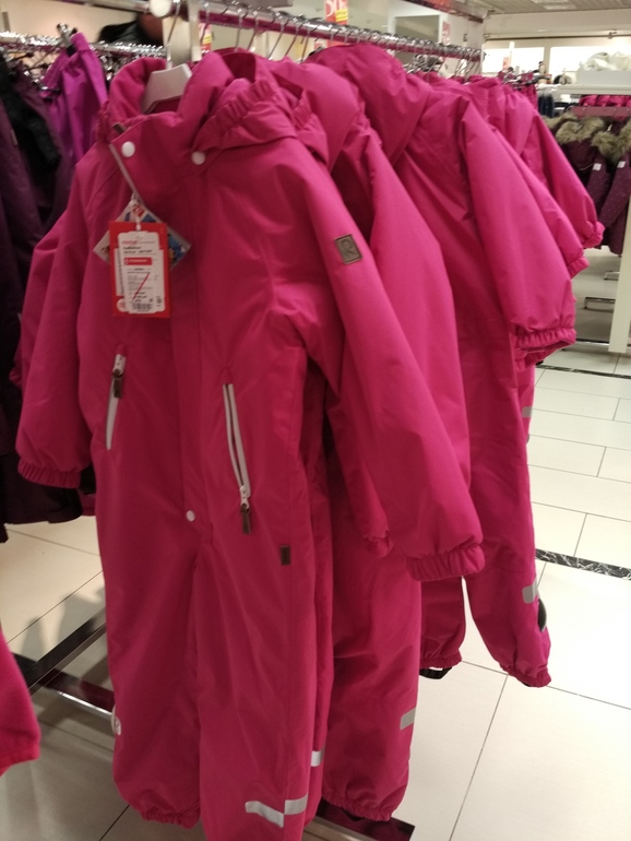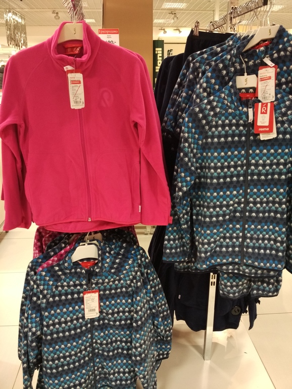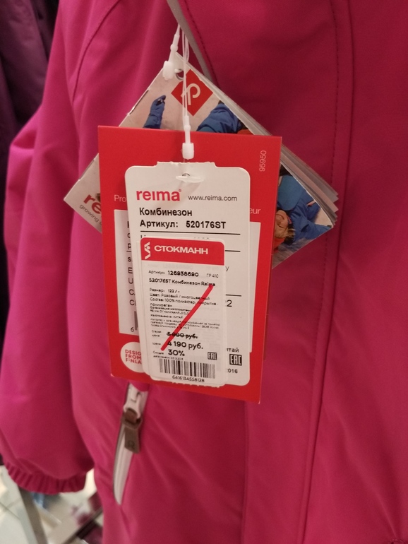 Скидка идет от первоначальной цены. На ценнике иногда обозначены прошлые скидки 30% и 40%, но их не смотрим. Вот, например, комбезы Reima и Lassie.