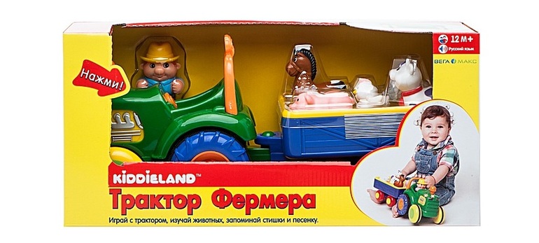 Я на этот НГ купила сыну такой точно трактор Kiddieland. Сейчас ему 8 месяцев. Он не расстается с этой игрушкой с момента дарения. Все нажимает, что - то балакает с ней, крутит колеса, катает взад - вперед, отдельно играет с животными. Любит и сам, и со мной в эту игруху играть.По качеству она мне тоже очень нравится.