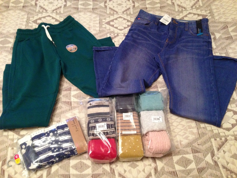 Могу поделиться джинсами. Они на 146 и плотных деток. Обошлись в 600р. Классные! И колготки красные,на 7-8 лет-1000р. Взяла боксеры,по кач-ву так себе. Большемерят!