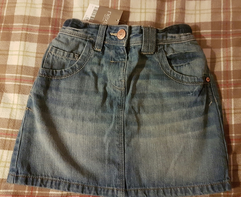 Юбочка джинсовая, у нас на каждый возраст есть такая) И та же история с появившимся размером.