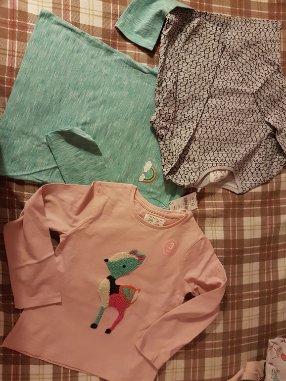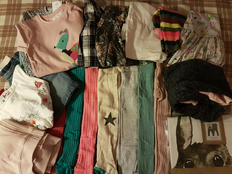 Вот такой улов:) Всё с запасом по размеру, кроме колготок и водолазки) Фото с телефона и вечером, так что цветопередача чуток страдает)