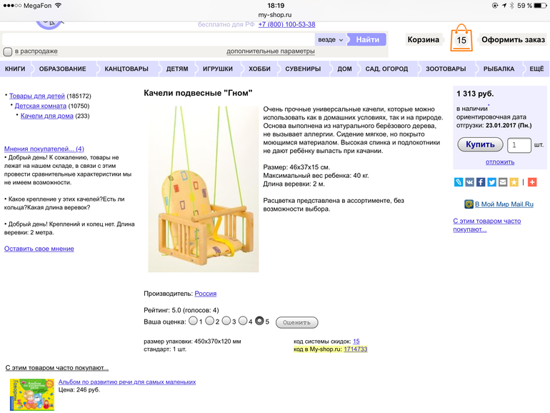 Там мягкая сидушка как креслице. И со всех сторон деревяшками огородено чтоб не выпала. Оч удобные. Не падает из них и просторные даже в щимней одежде влащием. Но название точно не помню то ли Гномик то ли что то еще. Вбейте в Май шоп качели если есть то найдете