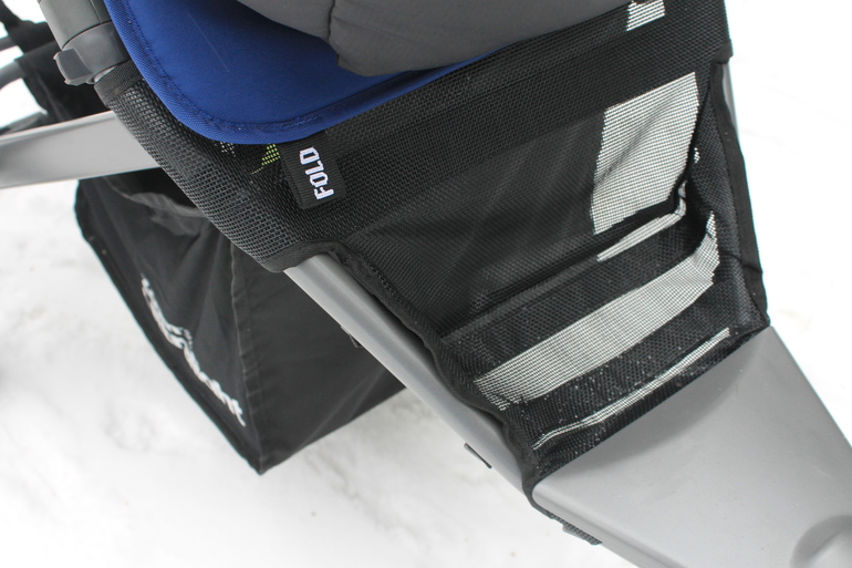 Также есть удобные сетчатые кармашки внутри сидения и на спинке.