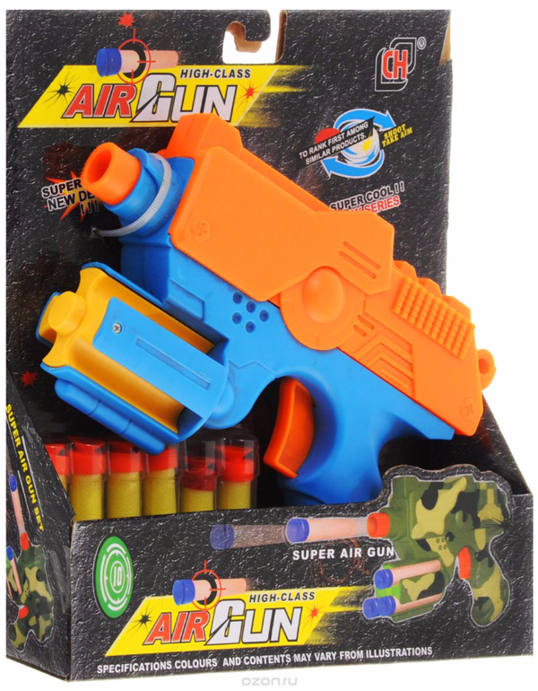 Если пистолет то только нерф, те в остальных сильно шумит пропеллер ( который выталкивает воздухом патрон) петляя нам не интересна(