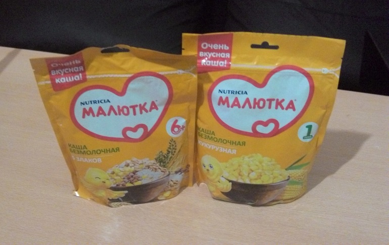 Срок годности у моих каш до июня 2018 года. Кукурузная каша - 1 супень- заботливое начало, можно давать с 5 месяцев. 5 злаков с 6 месяцев. Но там были и другие каши Малютка по акции, помню точно,что гречневая, овсяная.