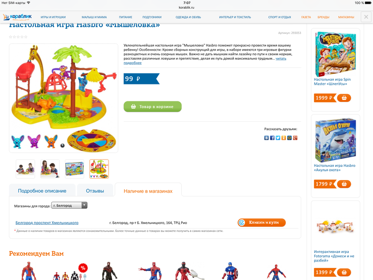 Распродажи. Скидки. Акции.В Белгороде ещё можно купить игру "Мышеловка" за 99 рублей