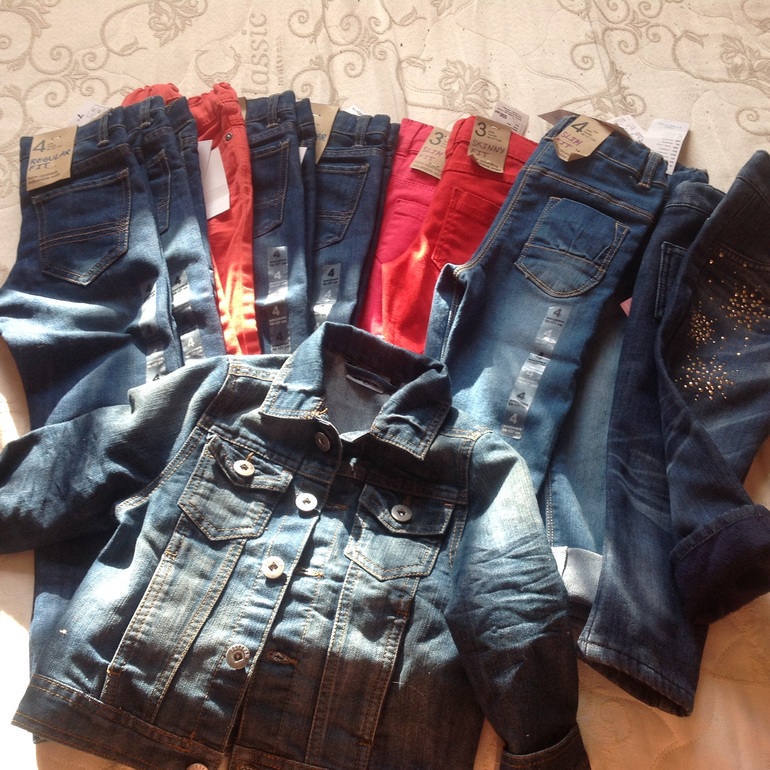 Куча джинсов из Киаби сильно на вырост. Некоторые можно уже сейчас поносить в подвернулось виде. Где-то по 300 рэ за пару. Темно синие по 200 - взяла много.