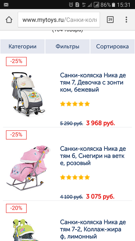 Если с кодом новых клиентов, то ника 7 с выдвежными колесами и перекидной ручкой 3300 стоила. http://www.mytoys.ru/Санки-коляски/Коляски/KID/ru-mt.ba.ca32.04.03/