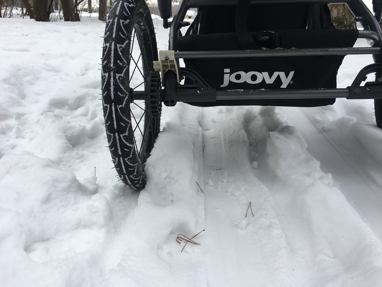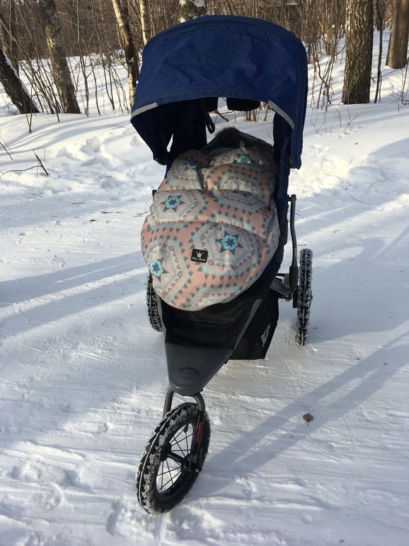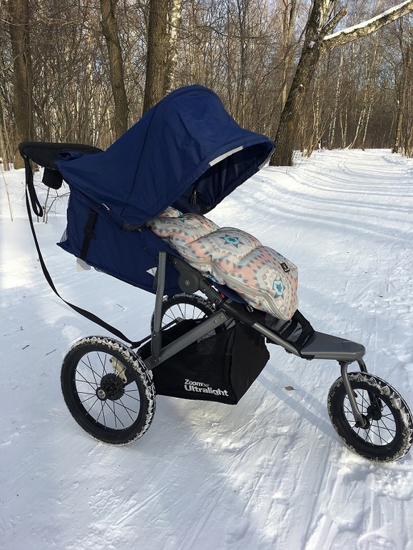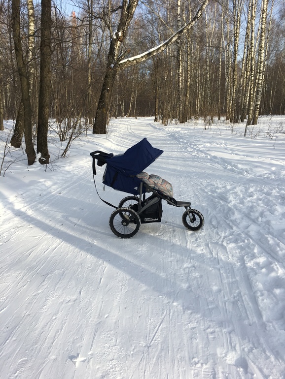 и передним поворотным колесом на 360 градусов, мне даже скучно стало гулять не то, что по дорожкам возле дома, я рискнула пойти в наш близлежащий лес и облазила всевозможные сугробы. Сказать, что я была в восторге, это ничего не сказать. Я не застревала, не буксовала, не «тюкала носом». И при этом управляла коляской одной рукой. И при этом даже не блокировала переднее колесо.