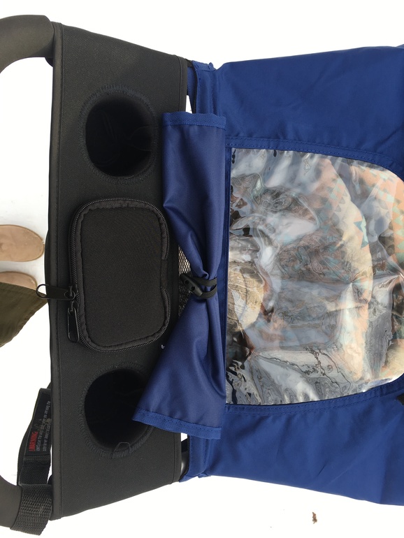 Удобный, закрепленный на ручке с двумя подстаканниками для бутылок или кружек с кофе, так необходимых мамам и одним отделением, спрятанным под молнией. Это Любовь!!=) Опять же в тевтонии в комплекте шла сумка, нет ни органайзера родного ни подстаканника и это большая катастрофа для меня, я заказывала подстаканник от munchkin, но он мне не понравился в использовании абсолютно. А сумку таскать каждый день нет никакой необходимости.