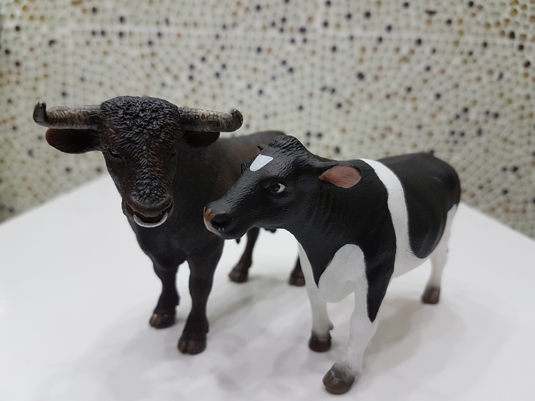 А тут для сравнения шляйх и моджо. Корова моджо как будто пластиковая, сглаженная...а бык шляйх бесподобен.