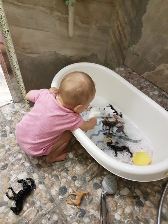 Остальные животные потихоньку тоже попадают в поле внимание. Вот орлана ей представила, потом шимпанзе таскала, потом крокодил....