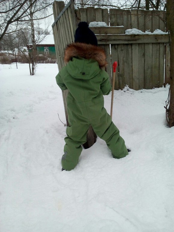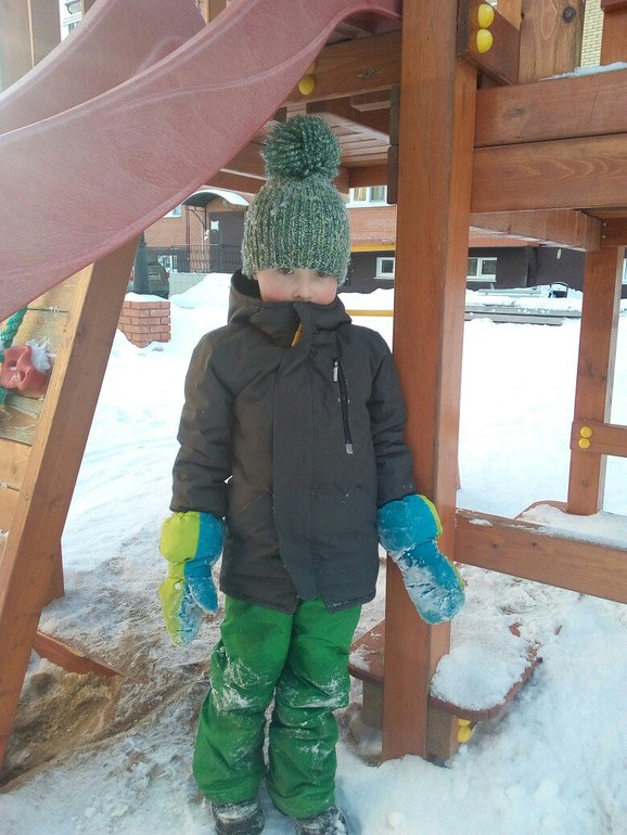 1) Первый комбинезон остался с прошлого года, но хватило его только до декабря (стал мал) Ростовка у него 98. Мембрана+ утеплитель 200 грамм+ флис на подкладе. Очень теплый.