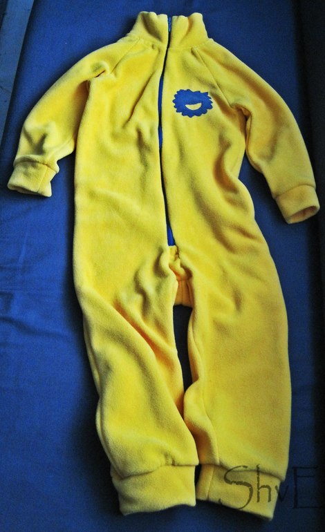 2) Далее донашивали еще один комбинезон. Но он уже 104 роста. Мембрана+утеплитель 150 грамм+флис. Тоже уже мал ( короткие рукава)