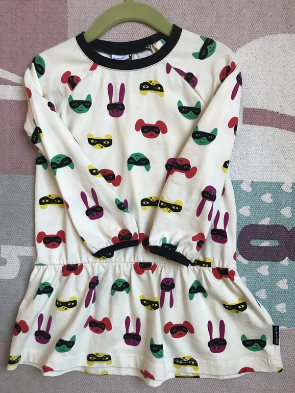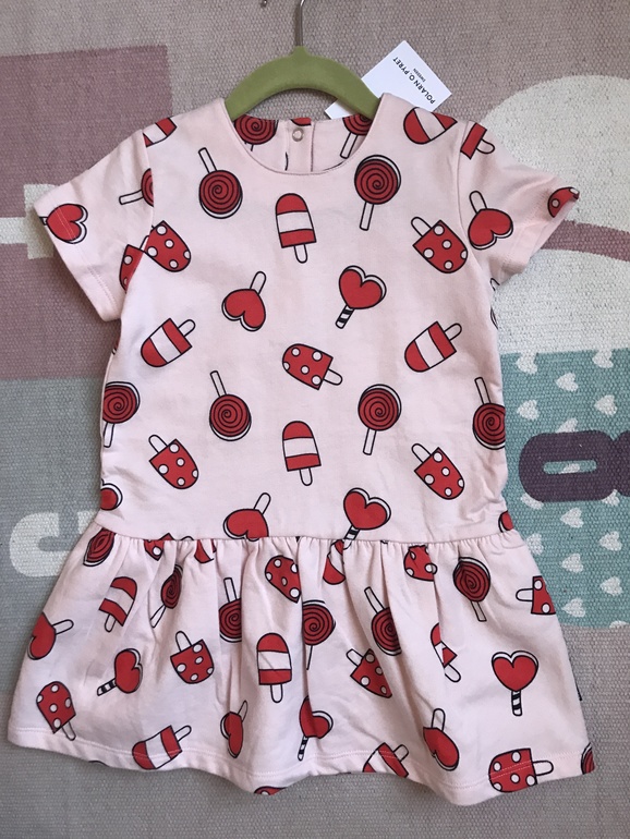 Вся одежда сильно большемерит, нам в почти три года размер 1,5-2 еще велик. Правда, мы сами мелкие. Платье-это моя последняя на данный момент покупка.