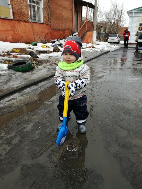 Счастливый малыш, прекрасный выбор мамы, но какой же убогий двор:(