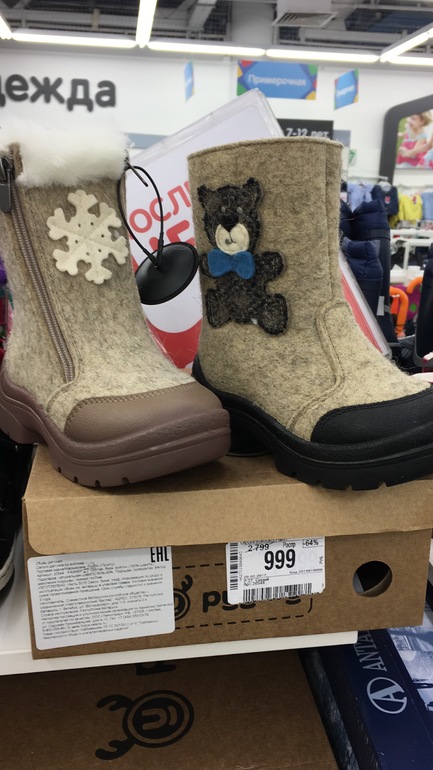 Распродажи. Скидки. Акции.Девочки, кто ещё не успел затариться валенками на следующий год, то в ДМ в ТЦ Реутов-Парк есть ещё белорусские валенки всех размеров но по одному экземпляру. На мальчиков не знаю, а на девочек точно были с 22 по 29 размер по 999р. Внутри дополнительный мех, пятка и носок тоже утеплены.