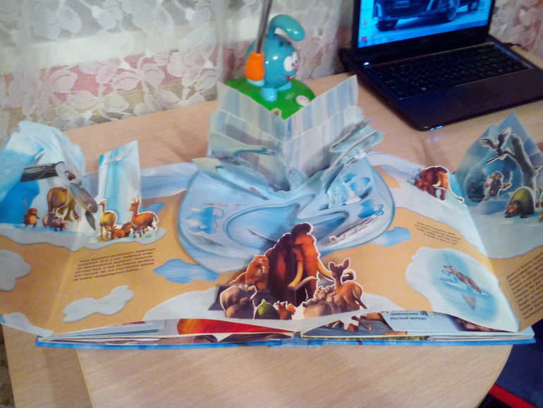 Ну и "Ледниковый период". Читала очень много восторженных отзывов по этой книге, малыш больше воспринимает как игрушку, поэтому выкладываю сюда. И все таки фото не передает какая же она интересная, много разворотов, секретики, непередаваемый объем изображения, малыш рассматривает, трогает, играет, как книгу пока и не читали, впечатлений достаточно