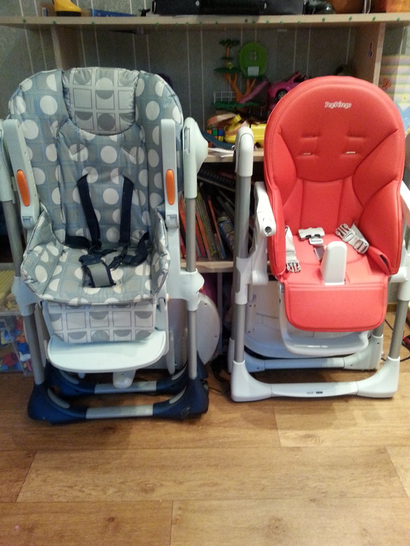 А вот во второй раз мне посчастливилось наткнуться на пег перего папа зеро 3. Эко кожа..ммммм ...Это прелесть! Ребенка в него клала с 3 месяцев, прикрепляя дугу. Потом сидели играли. И мне так нравиться этот цвет шикарный красный а мягкий какой! Ребенок не потеет, попе не холодно. А по габаритам стульчик очень компактный. В сложенном виде стоит сам и не падает! И очень легкий, что колес только 2шт не мешает, стул легко переставлять. Моется стул легко, в складки еда не забивается. С этим стулом я как расчетливая мама рассталась в 1,8.