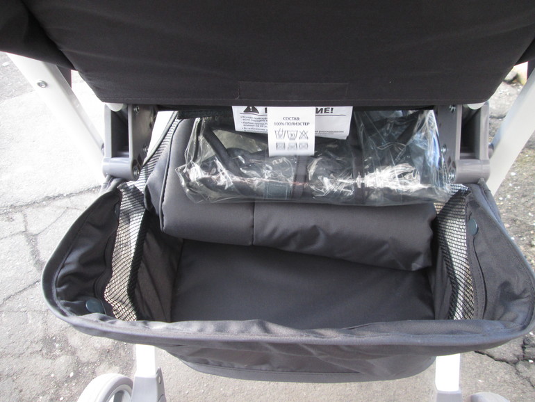 - корзина для покупок меня вполне устроила. В дальнюю часть я затолкала все аксессуары от коляски, и осталось еще место для покупок. Сегодня зашли в магазин, с продуктами коляска ехала немного потяжелее (но там было примерно 5 кг). И расположена корзина относительно высоко, ни за что не цепляется и грязь пока не налетела.