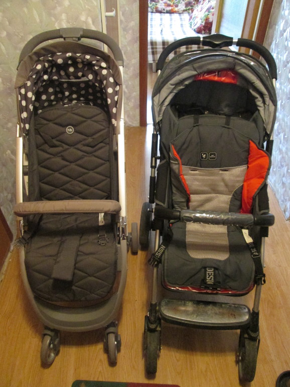 вот напоследок примерно для сравнения наша старая коляска и новая.