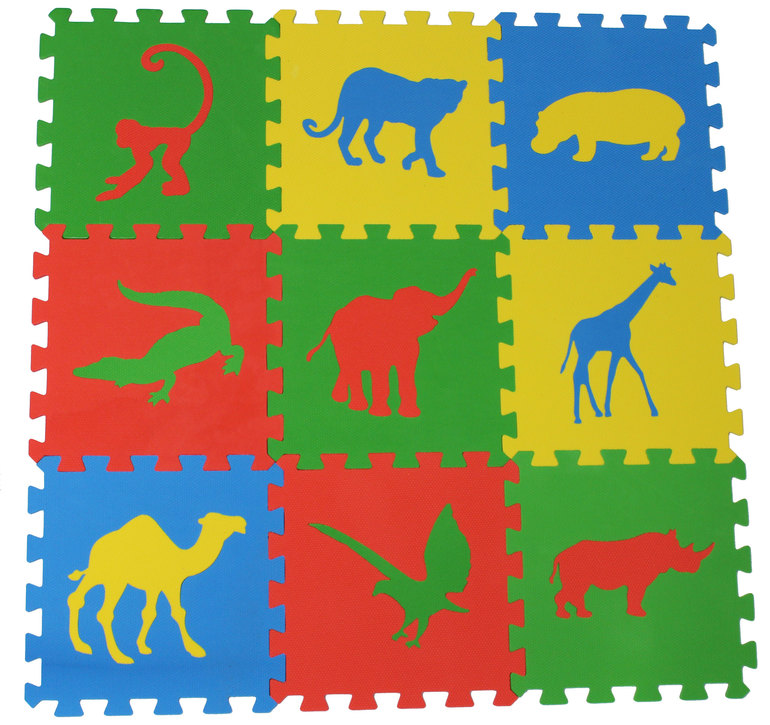 у нас прям такой, с животными. Сын периодически вынимает зверей и куски пазла, сам ставит на место. Но вот под такой ковер песок/пыль/грязь попадает - вымывать не удобно(( приходится все разбирать и отдельно мыть пол, отдельно пазлы.