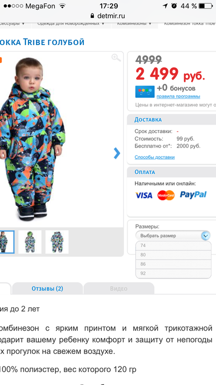 Получила я сегодня заказ по акции 2=3, плюс с майл бонусом. Комбез бесплатно вышел. Правда большой прям, надеюсь, к следующей веснесын дорастет до него))) Сейчас посмотрела еще раз наличие этого комбинезона - так вот есть все размеры и в инет-магазине и в розничных. Вы не смотрите на то, что цифры жирным не отмечены, попробуйте выбрать любой и высветится, что размер есть.