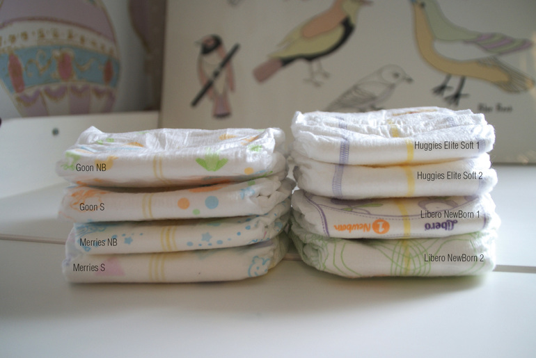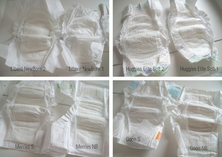 ПодгузникиТак получилось, что одновременно у меня скопилось несколько марок и размеров подгузников для новорожденных. Решила сделать сравнительный пост с фотографиями, замерами и личным впечатлением. Да-да, с замерами! Никогда не думала, что буду замерять подгузники)))) Возможно кому-то пост окажется полезным. Еще во время беременности запасалась по-тихоньку подгузниками по акциям и распродажам. Первым делом, конечно, японцев, которых все хвалят. Были куплены goon NB (до 5кг), goon S (4-7кг), merries NB и huggies elite soft 2. Дочь родилась маленькая - 49см и 3200 и дома выяснилось, что все закупленное добро оказалось велико. У нас было раздельное пребывание в роддоме и я не знала, как выглядят эти самые 49см, т.к не видела дочь без 3х слоев пеленок и одеял. В роддоме дали пробники Libero NewBorn 2 и Merries S - это все тоже было велико. Единственные подгузники из которых дочь не вываливалась, были надетые работниками в роддоме Libero NewBorn 1, за ними и отправился муж в магазин.