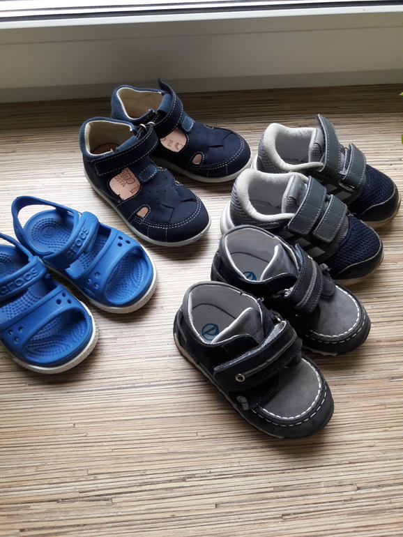 Мы в прошлое лето в таком же возрасте носили открытые сандалики(больше всего) и мокасины, на прохладу кроссовки.