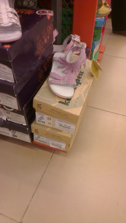 Детские - больше всего 32 размера, женские по 99 разные. В магазине есть и другие, я сняла только самые дешёвые. Это не основной магазин "Фабрика обуви", а именно дисконт, который налево от эскалатора.