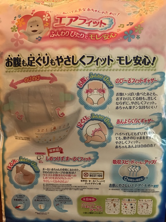 ПодгузникиКто уже покупал, это оригинал, написано вроде для внутреннего рынка, все на японском. По ощущениям такого же качества, только картинки разные