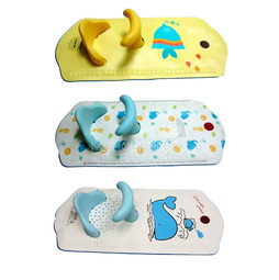 У нас в первый попа плохо пролазила,оказался неудобным и я купила противоскользящий коврик в хозмагазине-так и купались сидя на нем и до сих пор он в ходу, еще как ни странно горка выручала,самая обычная пластмассовая для младенцев,пеленку только на неё стелила,вот месяцев до 5 она в ней лежать не хотела,а после 5 часто купалась полулежа в ней