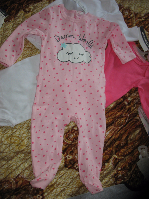 Бодики по 40 руб( хлопок, были 120). Комбинезон -был 339, сейчас 108...