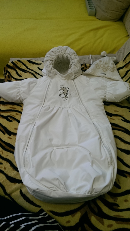 Они большемерные, вы его до апреля носить будете. Режим носки с + 3 до - 10, дальше с конвертом теплым в коляске.
