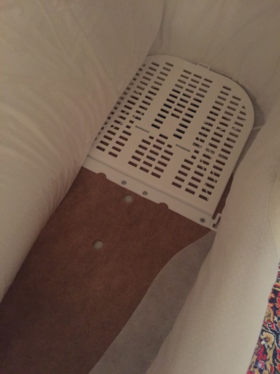 Отворот у накидки достаточно высокий и жёсткий. Дно у люльки деревянное (без вентиляции). Матрасик в комплекте достаточно плотный.