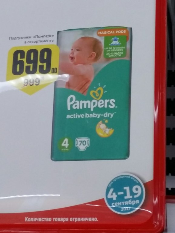 Распродажи. Скидки. Акции.Скидка на Pampers Active Baby-Dry в Атак и Ашан. Видела в Москве и Подмосковье. Размеры от 3 до 5.
