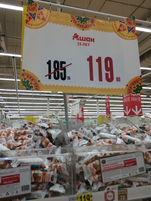 Обращайте внимание на ценники, по многим товарам идет акция 2+1 бесплатно. Причем не всегда ее видно из далека, только на самом ценнике видно. По детским товарам не заметила ее, по продуктам очень неплохо получилось.