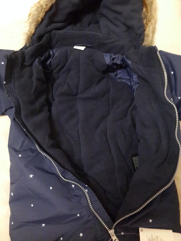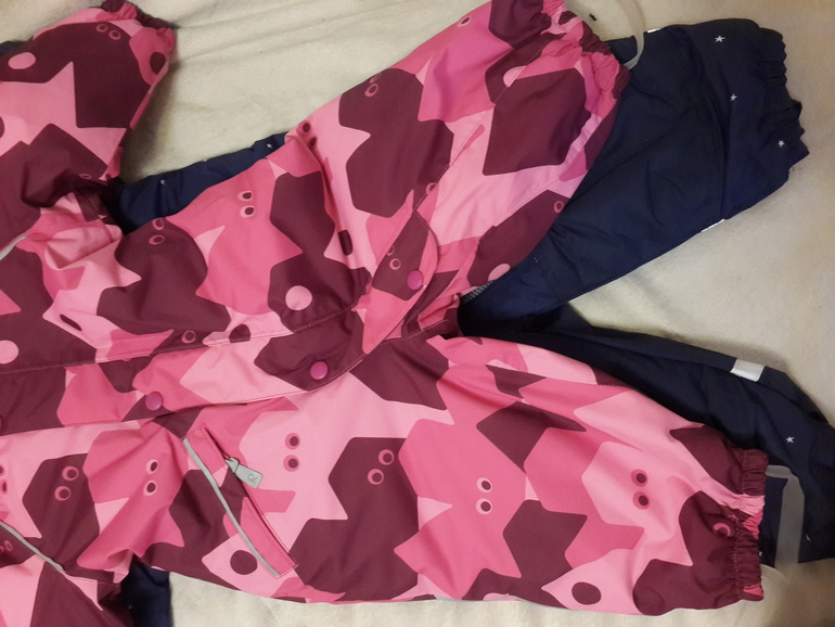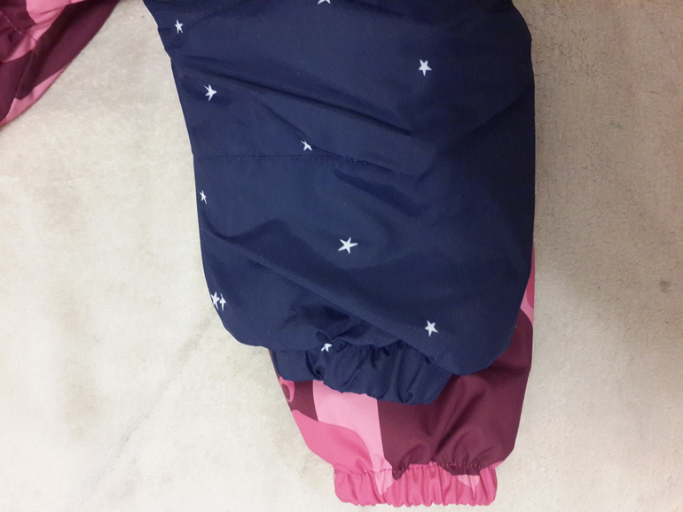 Вообще комбез классный, но в деталях Рейма выигрывает. Штрипки: hm - пришитая к штанинам резинка, Рейма - силикон с регулировкой, у Реймы молния закрыта планкой, капюшон на кнопках, hm - на липучках, "чебурашка" на капюшоне hm не отстегивается. Рейма внутри гладкая, легко поддеть флис, hm уже с флисом, если поддевать флис, может тяжело натягиваться. В Рейме есть утяжки по талии, в hm только небольшая резинка сзади.