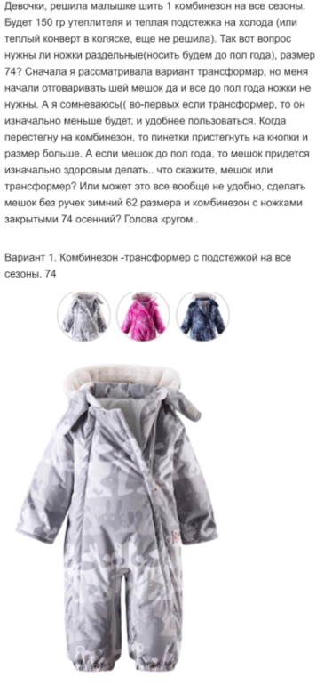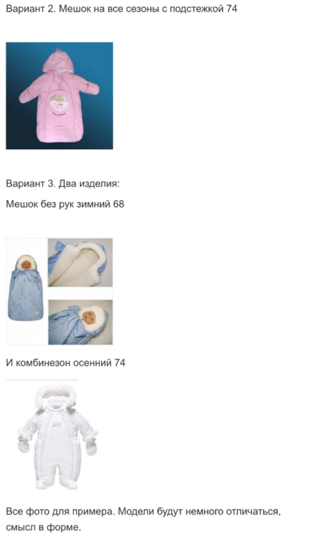 Чтобы если на улице не очень холодно - в одном слипе положить в коляску и все) пока мелкий. А потом на комбез-поддеву весной перейти. Но я скорее всего буду шить по факту, заранее есть один комбез и все