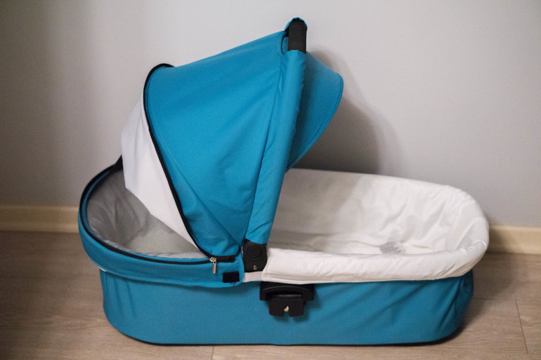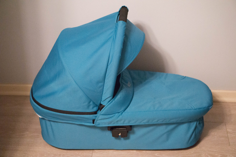 -Конструкция люльки такова, что точек крепления люльки к шасси только 2, за счет чего центр тяжести немного смещен и ребенок лежит немного головой вниз, так как дно люльки не регулируется, приходилось что-то подкладывать под голову. Можно выйти из ситуации покупкой подушки-позиционера для колсяки.