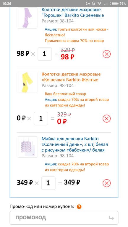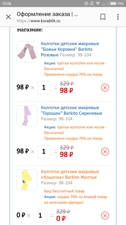 купила колготки - одни берешь, на вторые 70%, а третьи бесплатно -))) классно, спасибо!