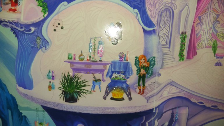 Сперва наклеиваем наклейки на каждый лист согласно образцу,а затем скрепляем листы между собой-получается огромный плакат на стену,про жизнь фей