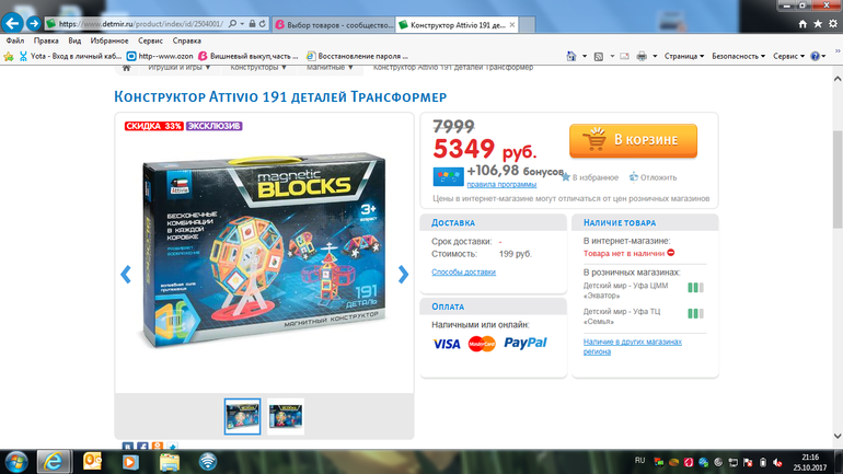 Спасибо большое, но он же действует только при заказе через инет магазин или нет? В инет магазине нет в наличии, только в розничных(( Сегодня заезжала, смотрела - лежат на полочках....