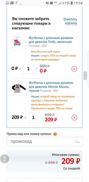 Распродажи. Скидки. Акции.Вещи с героями мультфильмов выходят по 100 руб за вещь, если класть в корзину по 2 вещи. Цена пересчитывается уже в корзине.