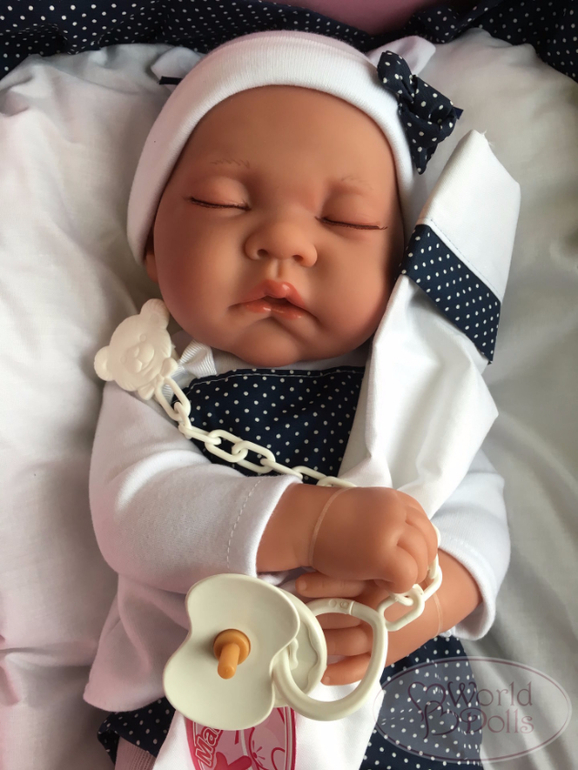 это самая любимая, 55 см мягконабивная. Покупали на новый год в три года, больше всего она играет именно этой куклой. Виниловые тяжелые, их особо не потаскаешь и купали мы их всего пару раз. А мягконабивная легкая, ее очень удобно носить на руках, можно много одежды накупить на новорожденного и ей все это подойдет. В общем, если бы выбирала одну, ,купила бы только большую