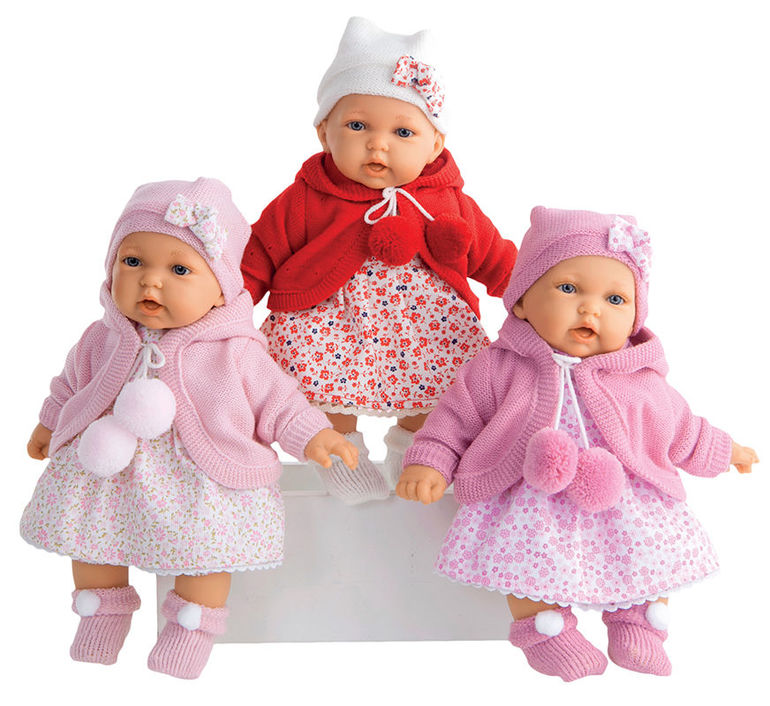 У нас есть та что на втором фото. Хорошенькая. Но мы дарили ее на год. В три я бы искала что то поинтереснее. Ну хотя бы с волосами, чтобы расчесывать и прически делать. Ну или те, которых надо кормить и памперс менять :) своей я в два подарила Llorens балерину, она с волосами и мы уже любим ее причесывать :) а вообще мне нравятся почти все испанские куклы. Присмотритесь еще к Paola Reina и Llorens.