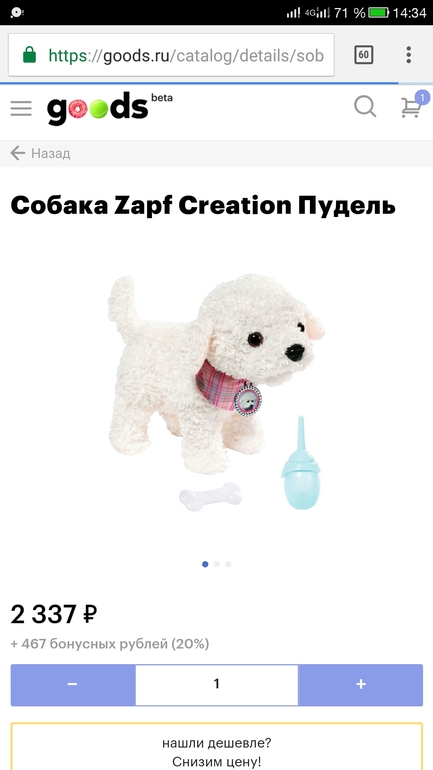 Тоже заказала, т.к. достойной альтернативы нет... Смотрела в детмире фуриалфрендс, они все вида китайского... Эту не видела вживую, но надеюсь, бебиборн держит марку. На гудсе минус бонусы вышла 1600 р. Доставка через неделю- не быстро...