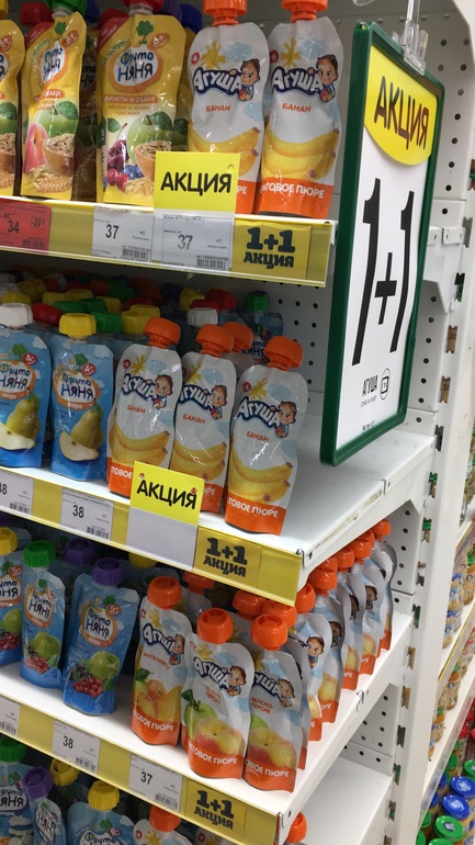 Сейчас там акция 1+1 на сок и пюре в пакетиках-непроливайках. Не врут, а то они любители приукрашиваться свои скидки! Сегодня закупалась. 😄