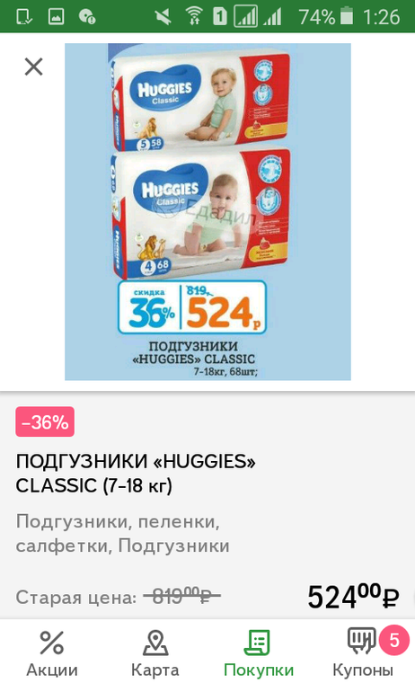ПодгузникиВсем привет, дорогие ббшекчки! Может кому-то пригодится инфа.В Кораблике очень приятная акция на подгузы Хаггис Классик. Я смотрела размеры 4 (7-18кг) и 5(11-25)- цена 524р.